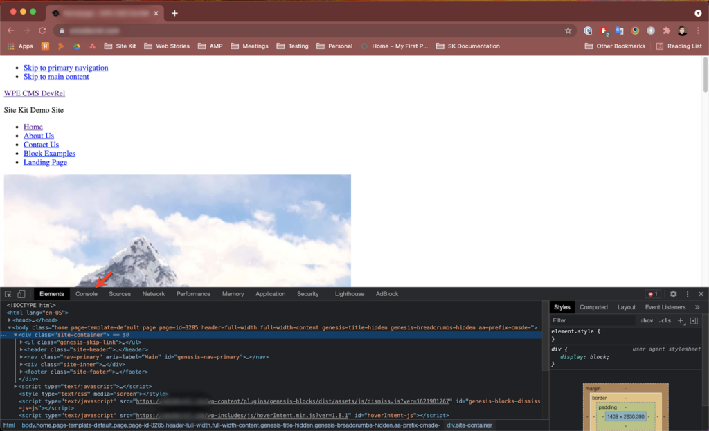 Console errors can help us identify if your website is not appropriately loading files that are required for Site Kit to work properly. To view and share your console errors: